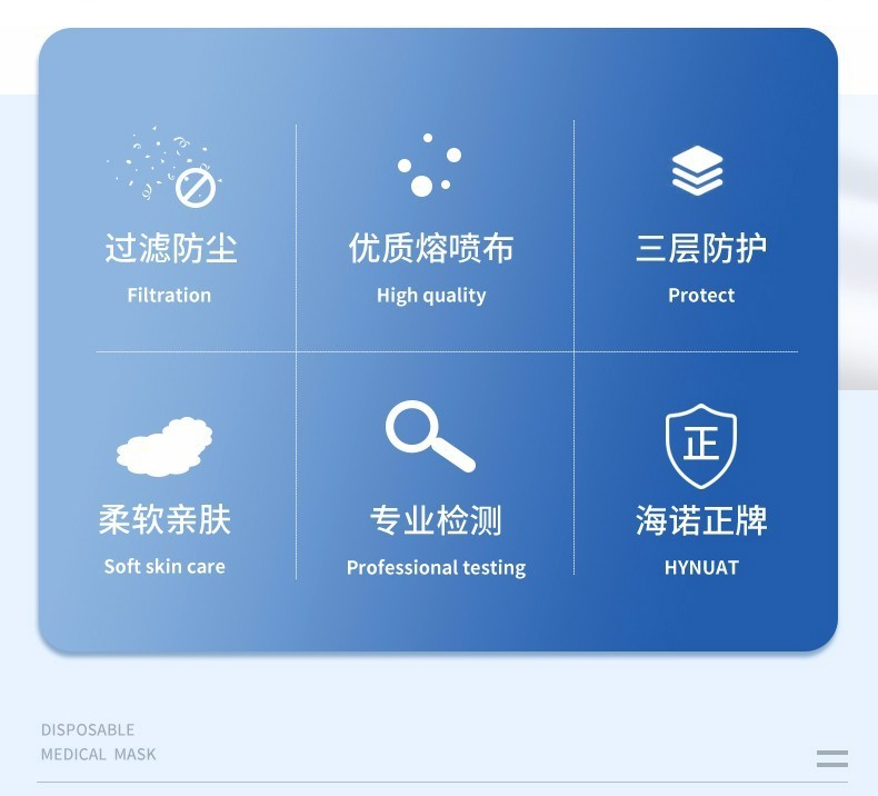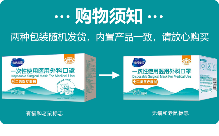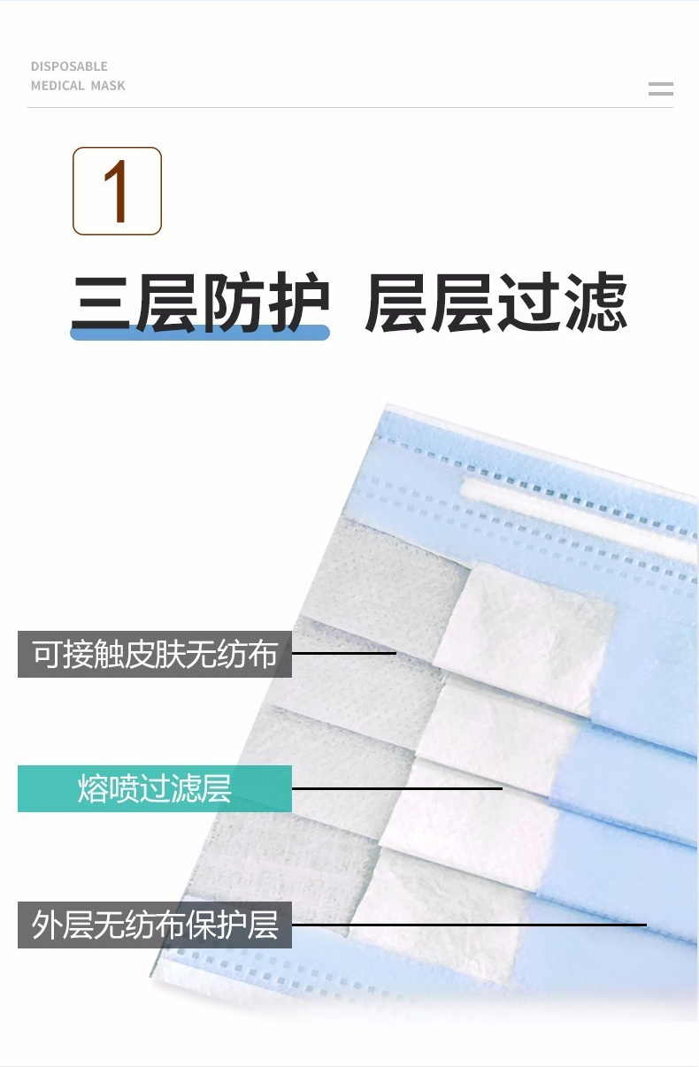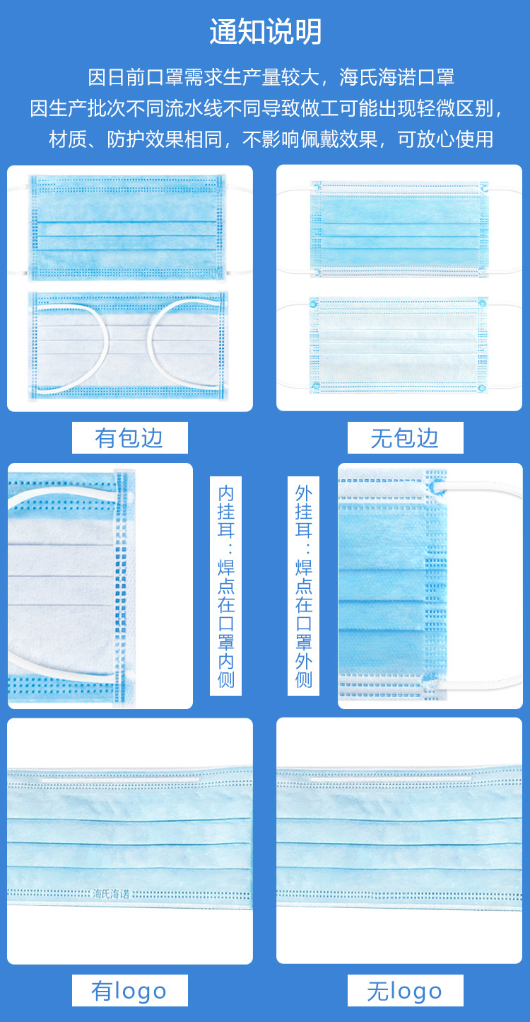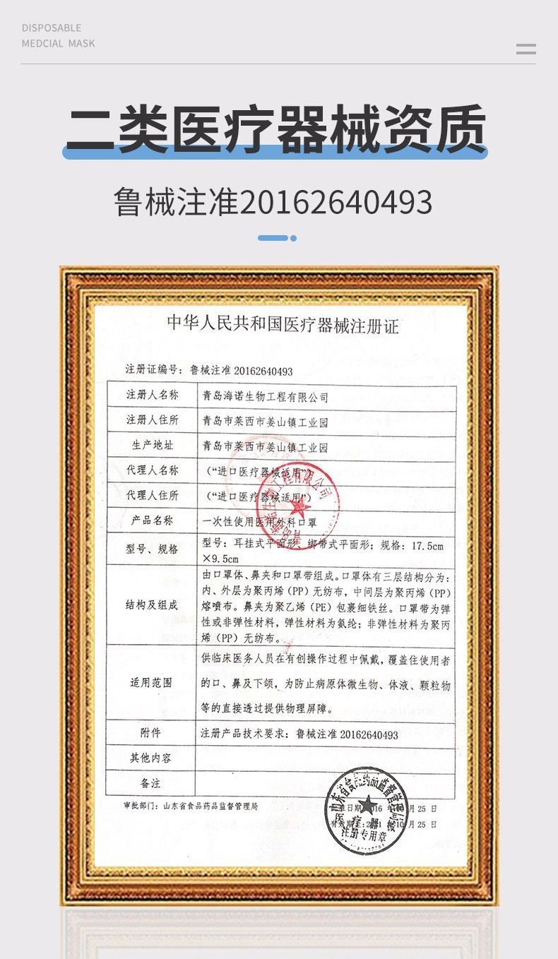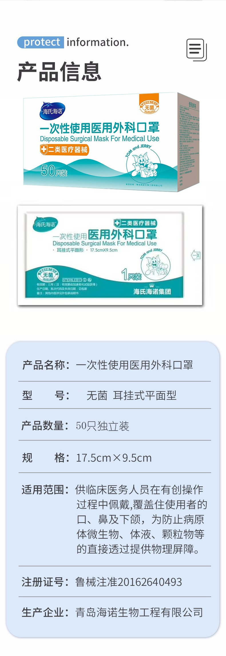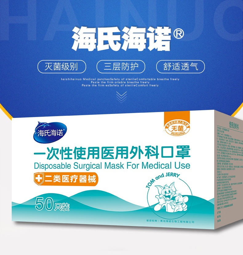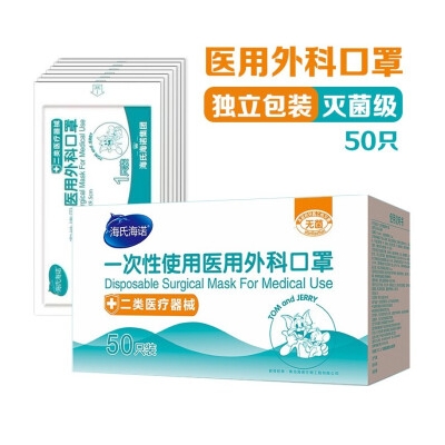 商品名称:海氏海诺 一次性医用外科口罩 无菌三层外科灭菌口罩医用 50只独立包装(二类医疗器械)