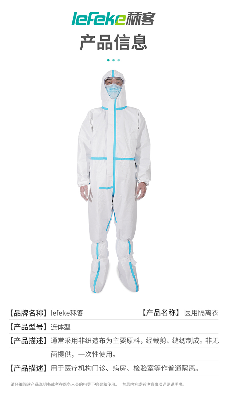 商品名称:秝客 lefeke 医用隔离衣 医护人员连帽衣非无菌型隔离防水防护服