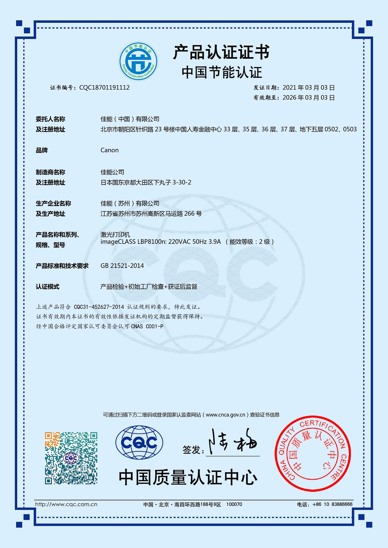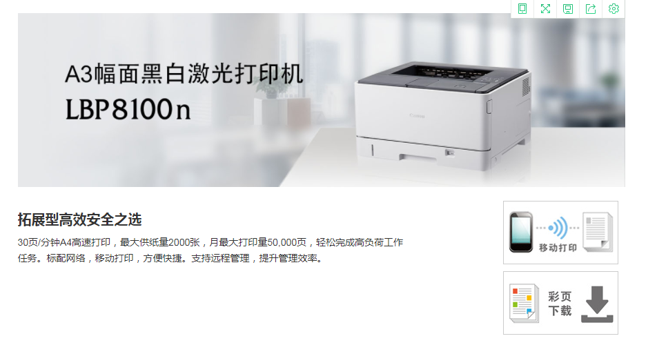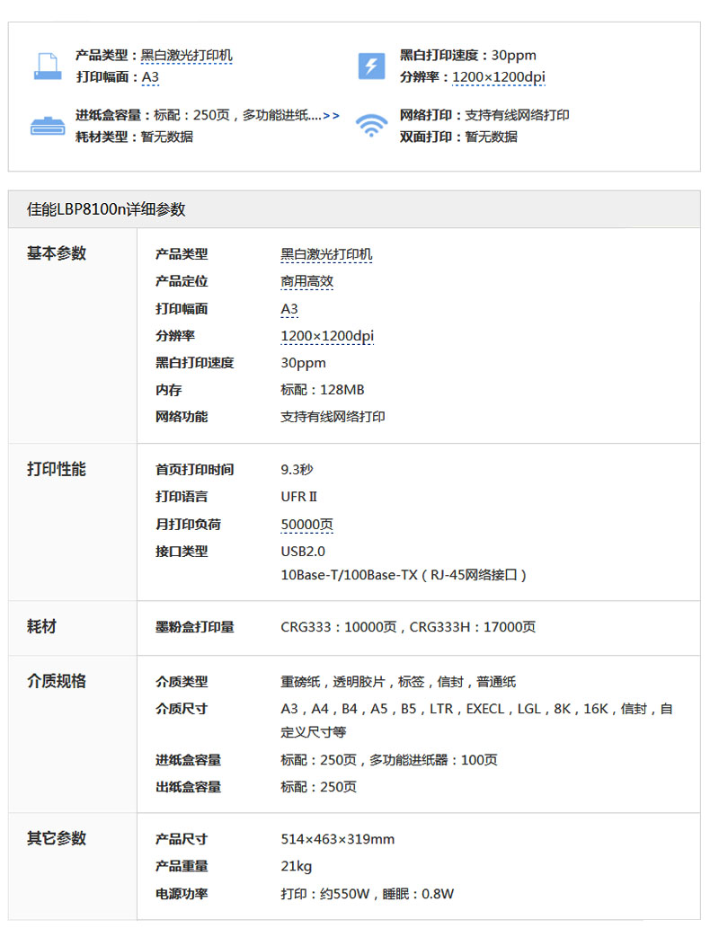 商品名称:佳能激光打印机imageCLASS LBP8100n