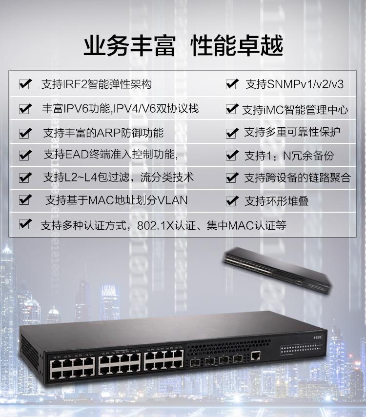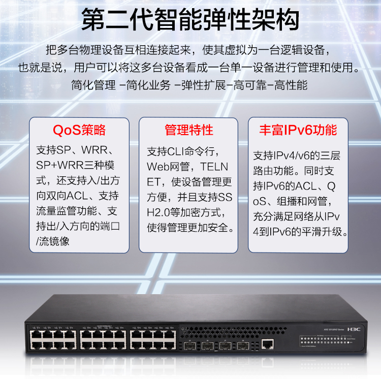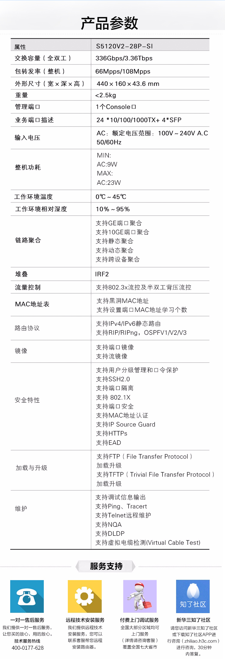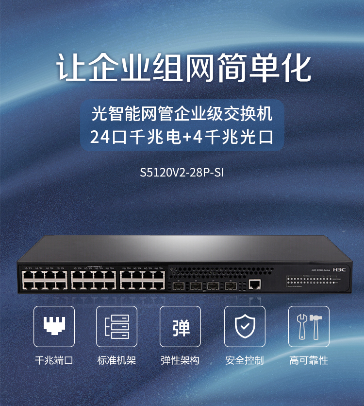 商品名称:华三(H3C)S5120V2-28P-SI 24千兆电口+4千兆光智能网管企业级网络交换机