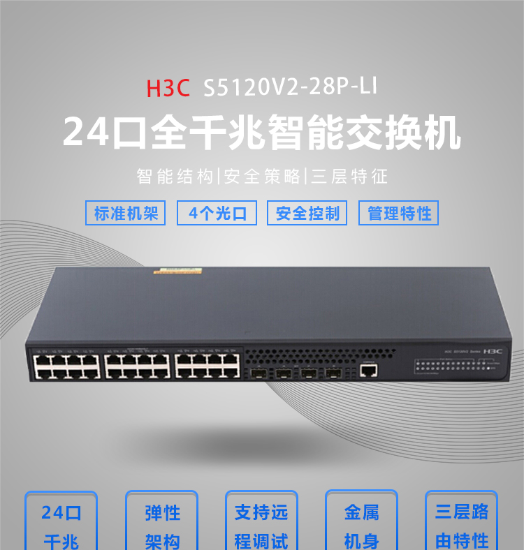 华三(H3C)LS-5120V2-28P-LI 24口全千兆企业级交换机 智能网管网络交换器