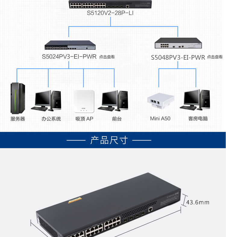 商品名称:华三(H3C)LS-5120V2-28P-LI 24口全千兆企业级交换机 智能网管网络交换器
