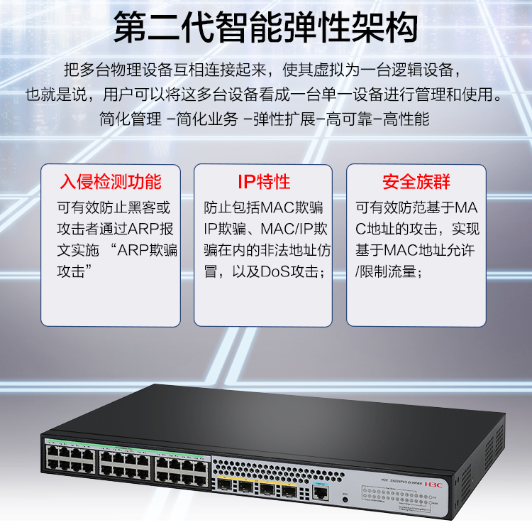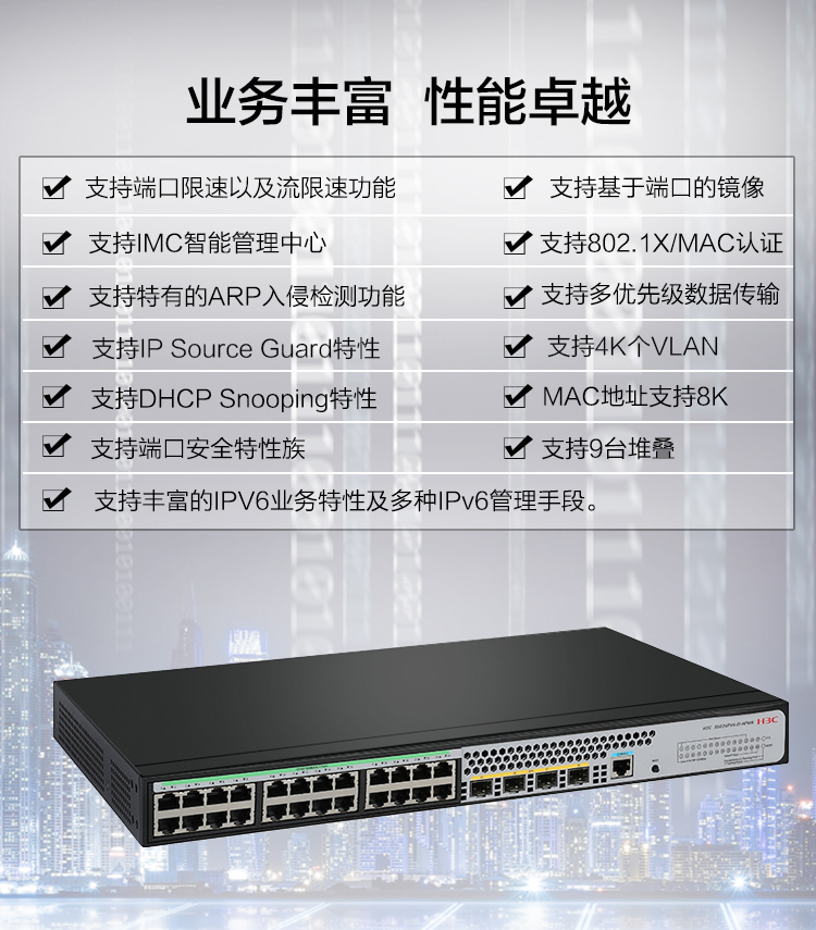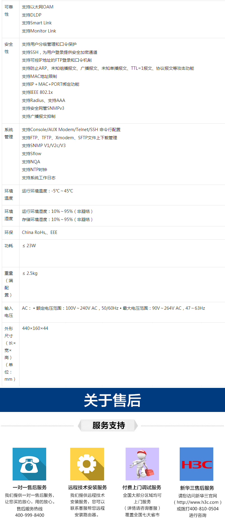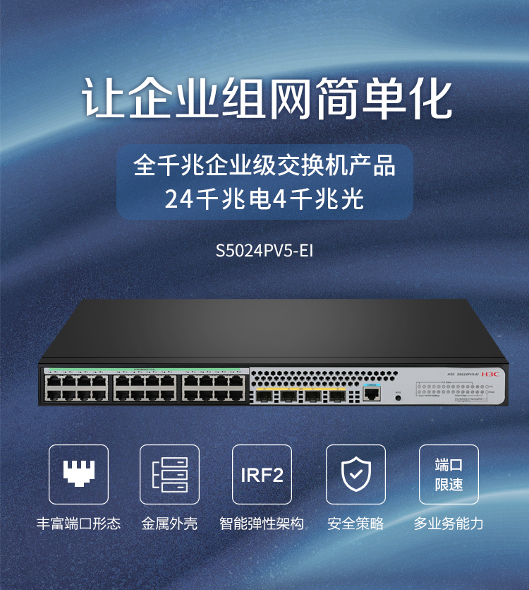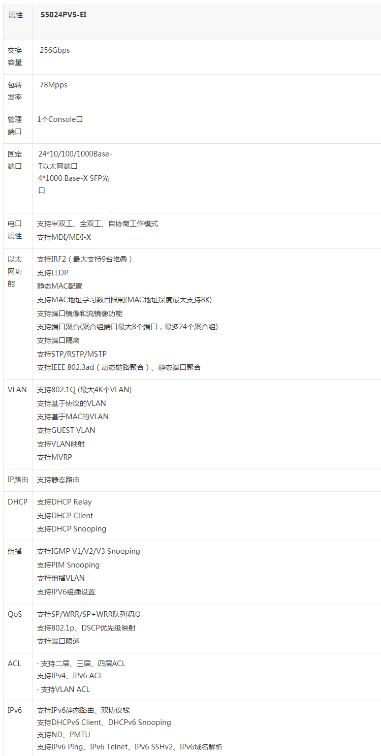 商品名称:华三(H3C)24口全千兆二层网管企业级网络交换机 S5024PV5-EI