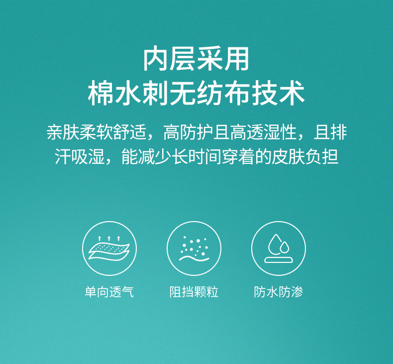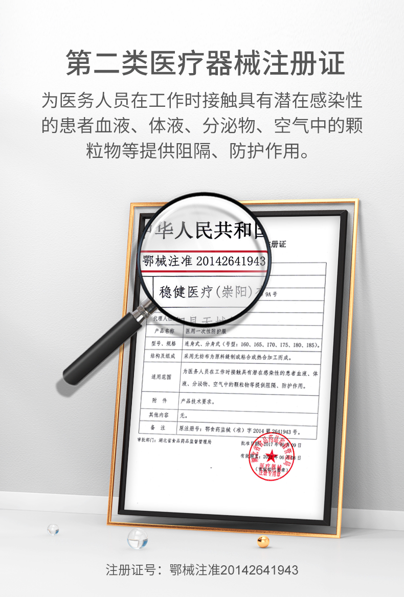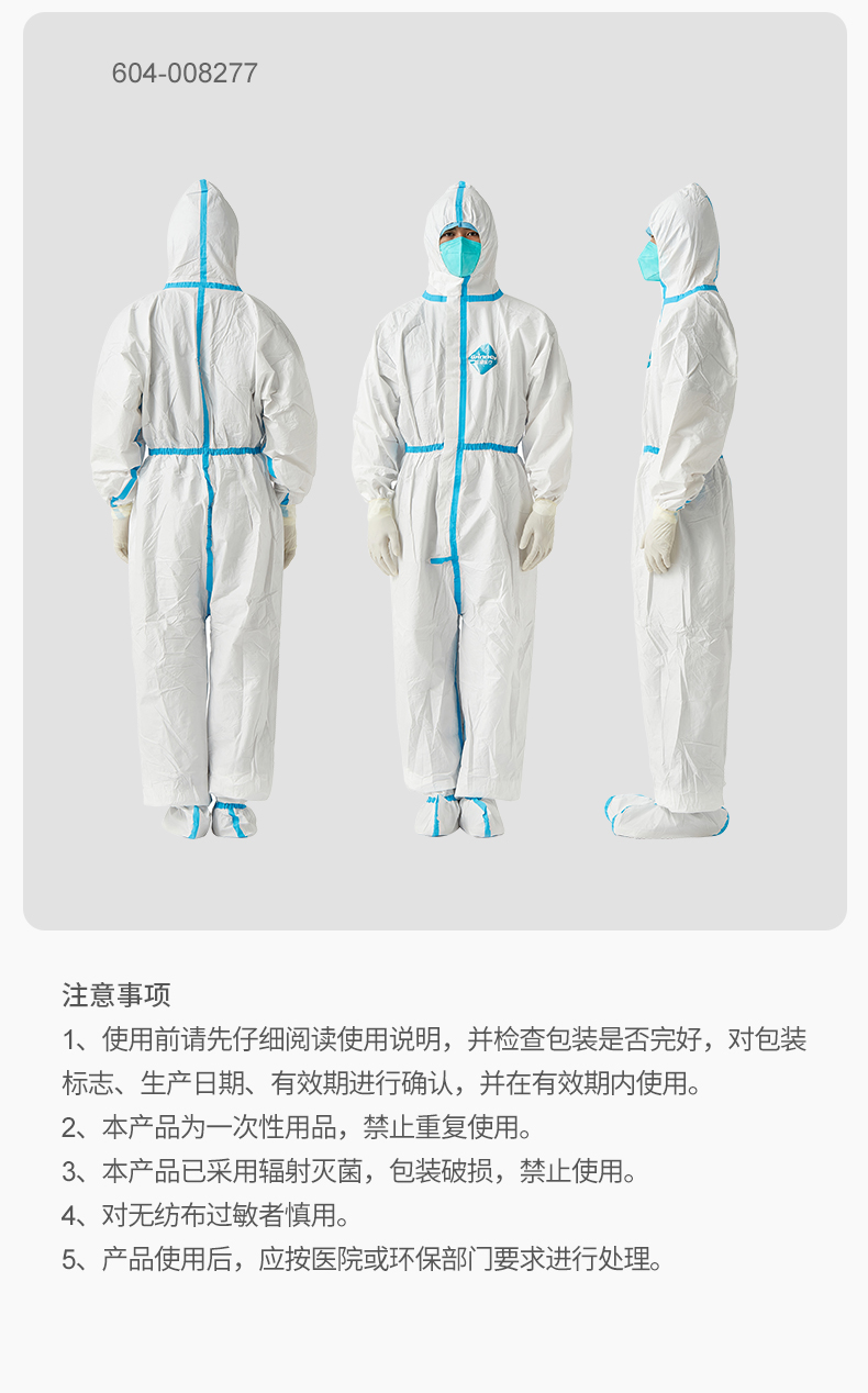 • 适用范围:为医务人员在工作时接触具有潜在感染性患者血液、体液、分泌物、空气中的颗粒物等提供阻隔、防护作用