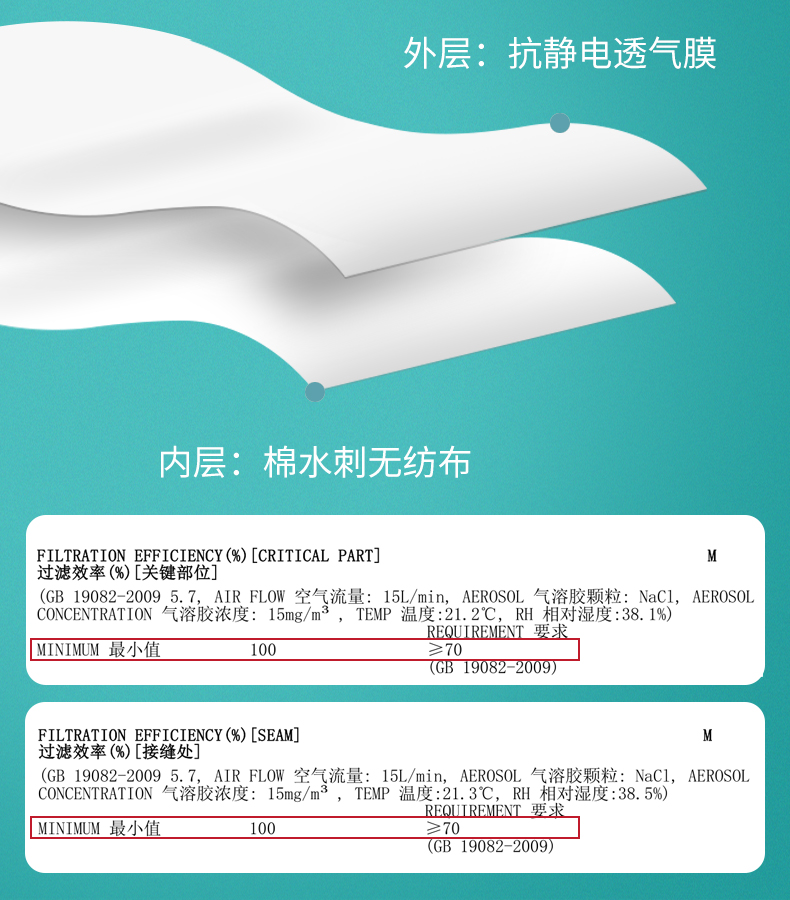• 结构及组成:采用无纺布为原料经缝制或粘合或热合加工而成。