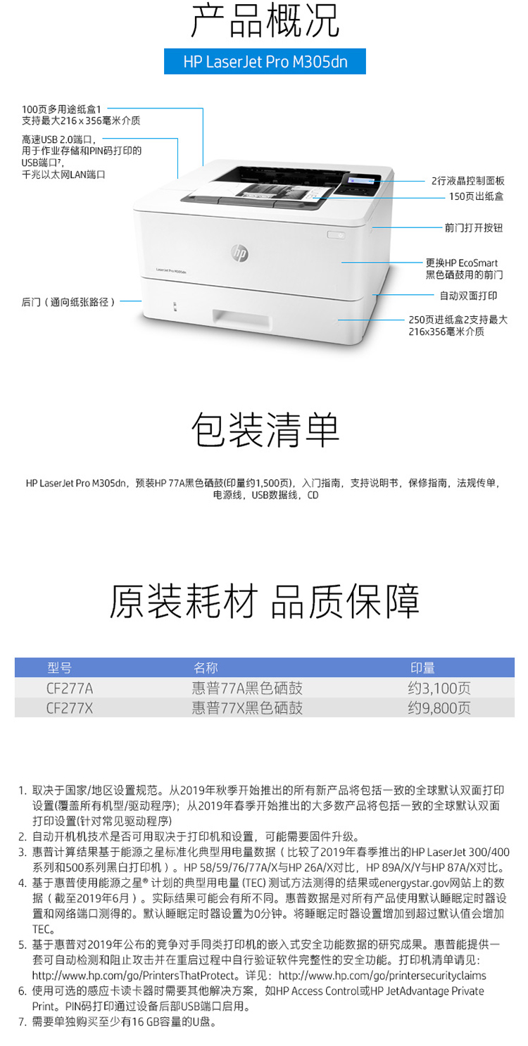 商品名称:惠普(HP)LaserJet Pro M305dn Printer黑白激光打印机(A4打印 网络双面打印)