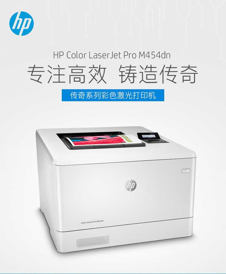 惠普(HP)Color LaserJet Pro M454dn Printer彩色激光打印机(A4打印 网络双面打印)