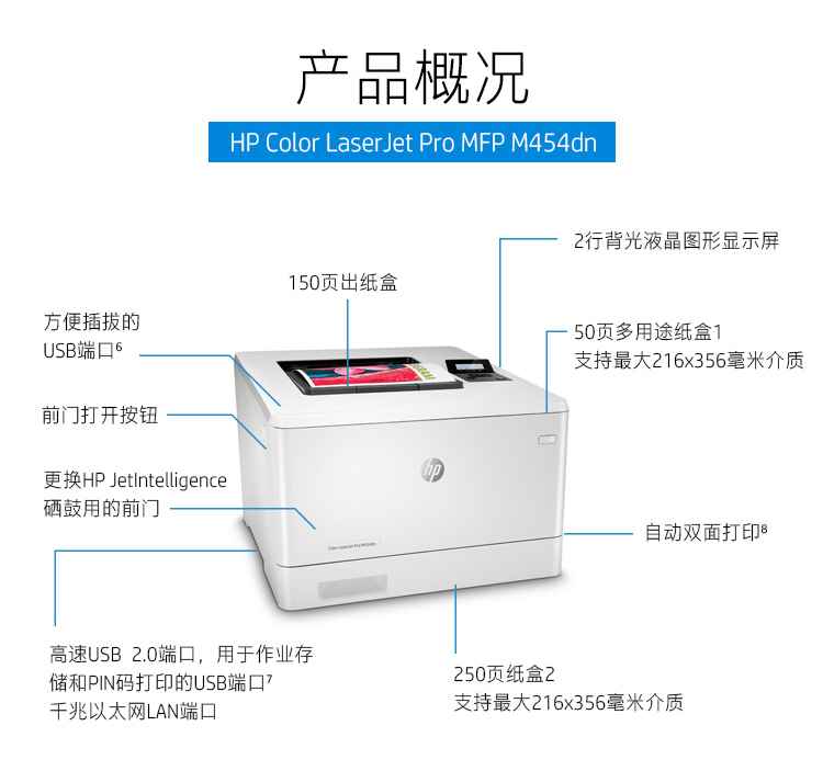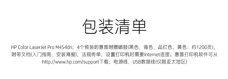商品名称:惠普(HP)Color LaserJet Pro M454dn Printer彩色激光打印机(A4打印 网络双面打印)