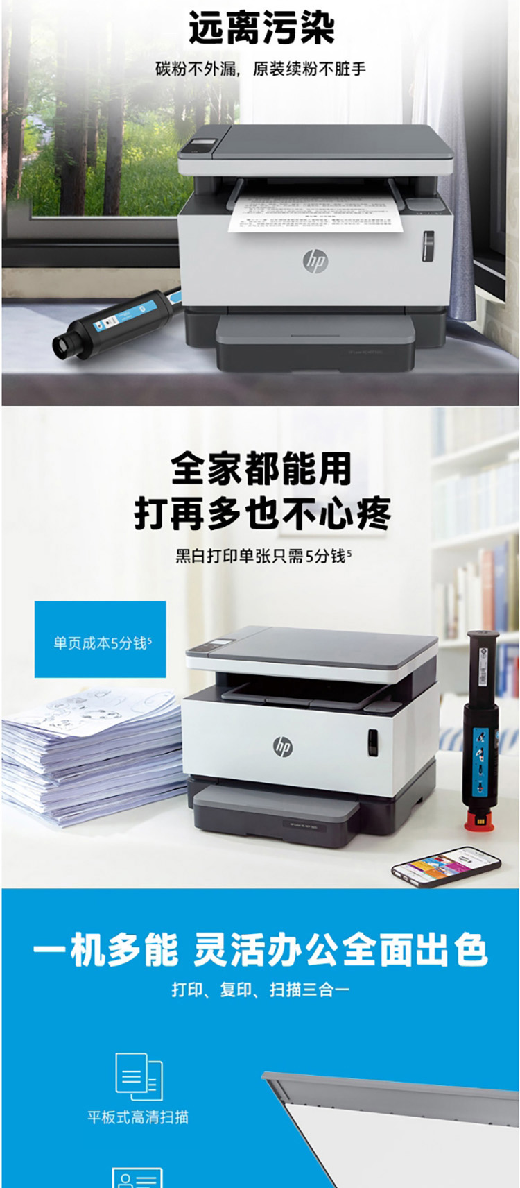 惠普(HP)Laser NS MFP 1005 黑白激光打印机(A4打印/复印/扫描/)