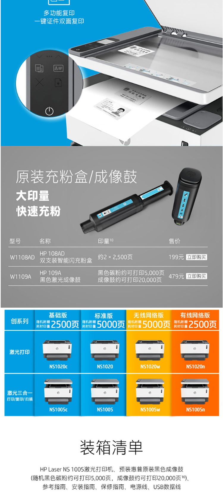 商品名称:惠普(HP)Laser NS MFP 1005 黑白激光打印机(A4打印/复印/扫描/)