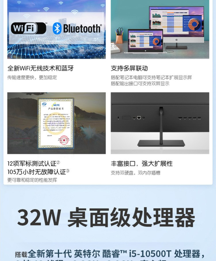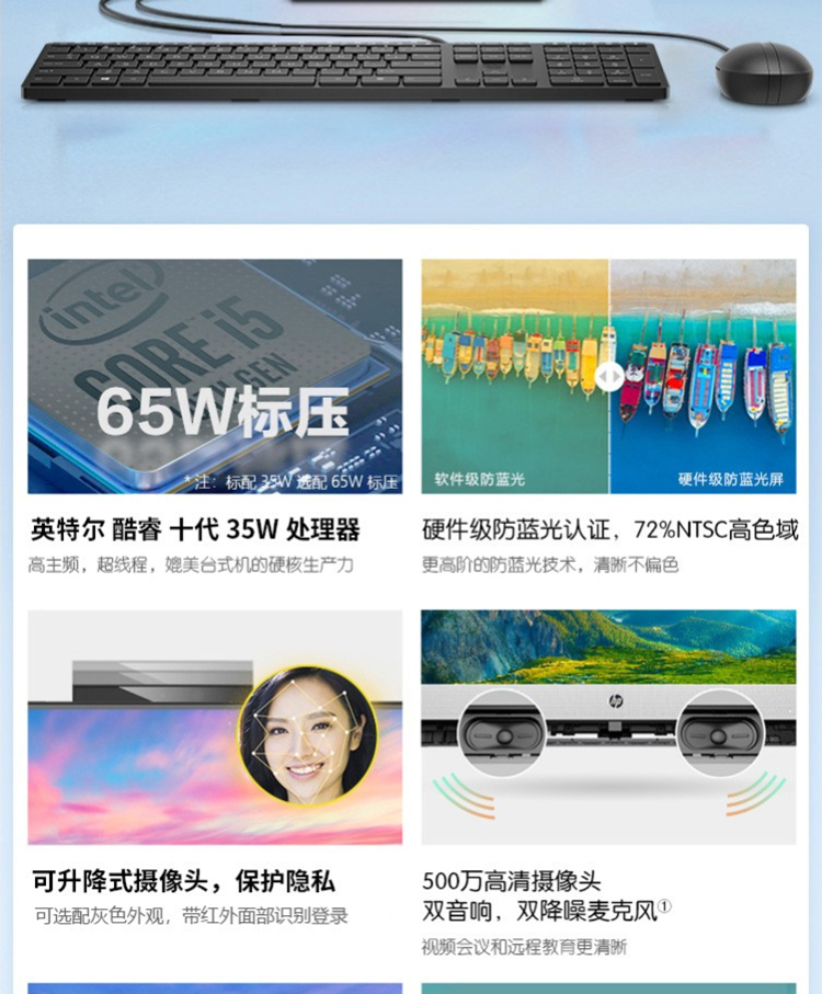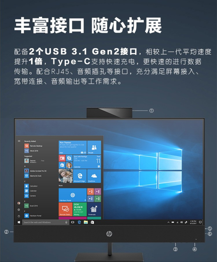 商品名称:惠普HP ProOne400 G6 23.8寸FHD/NewCorei5-10500T(2.3G/12M/6核)/8GDDR42666/256SSD/Windows10Home64位/USB键盘/USBOptical鼠标/100万像素可升降摄像头/内置麦克风/内置商业级音响/90W/4*USB3.1Gen1/1*USBType-CGen2/1*USB3.1Gen2/23.8"IPS宽屏LED背光防眩光液晶显示器(1920X1080)/标配内置802.11AC双频无线网卡带蓝牙4.2/网络同传