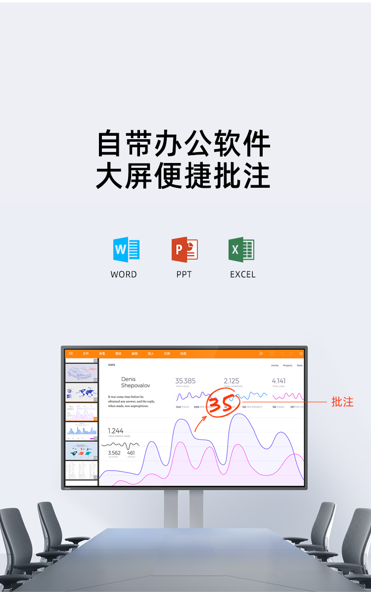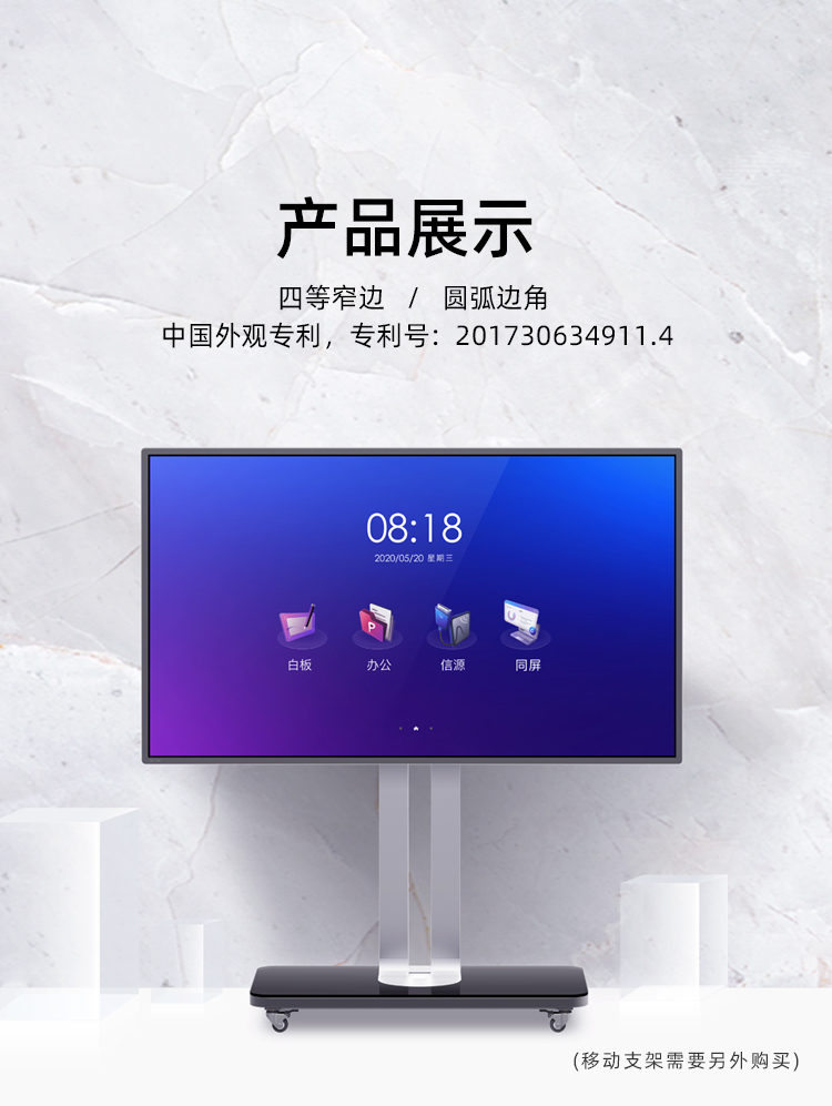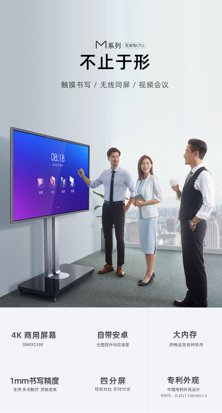皓丽(Horion) 75英寸智能会议平板4K高清75M3 内存3G+32G带同屏器智能笔移动支架