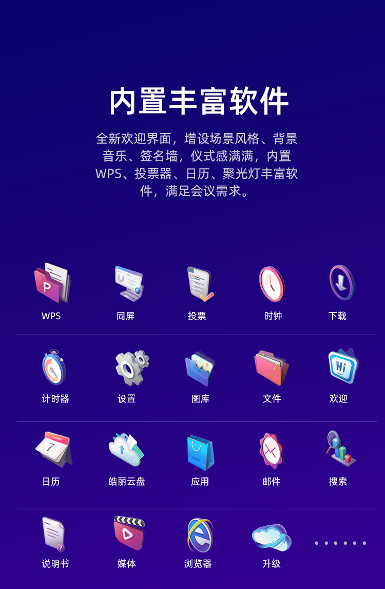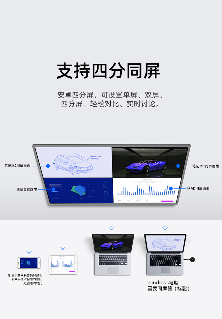 商品名称:皓丽(Horion) 75英寸智能会议平板4K高清75M3 内存3G+32G带同屏器智能笔移动支架