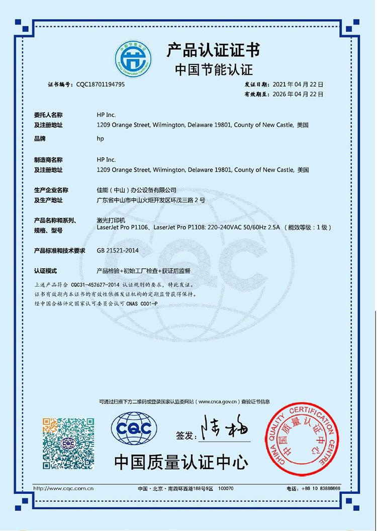 • 认证型号:P1108
