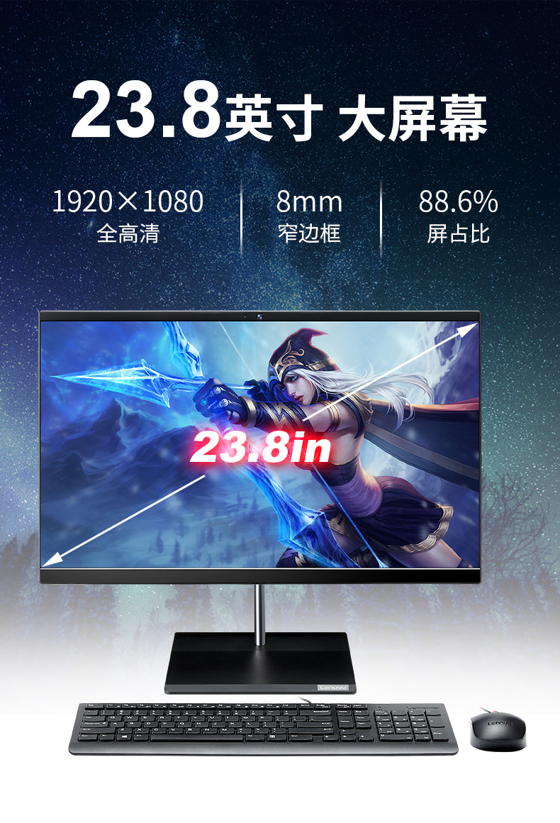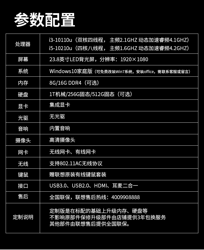 联想一体机 S5430 I5 10210U/8G DDR4/M.2 512GB SSD/可俯仰底座/集成显卡/无光驱/集成摄像头/2*2AC+BT无线局域网卡/蓝牙4.0/读卡器/集成音箱/集成麦克风/Windows 10 home 64位中文版/ 65W电源/23.8寸FHD/三年工程师上门保修+时刻响应服务/有线键鼠套装/2019 office